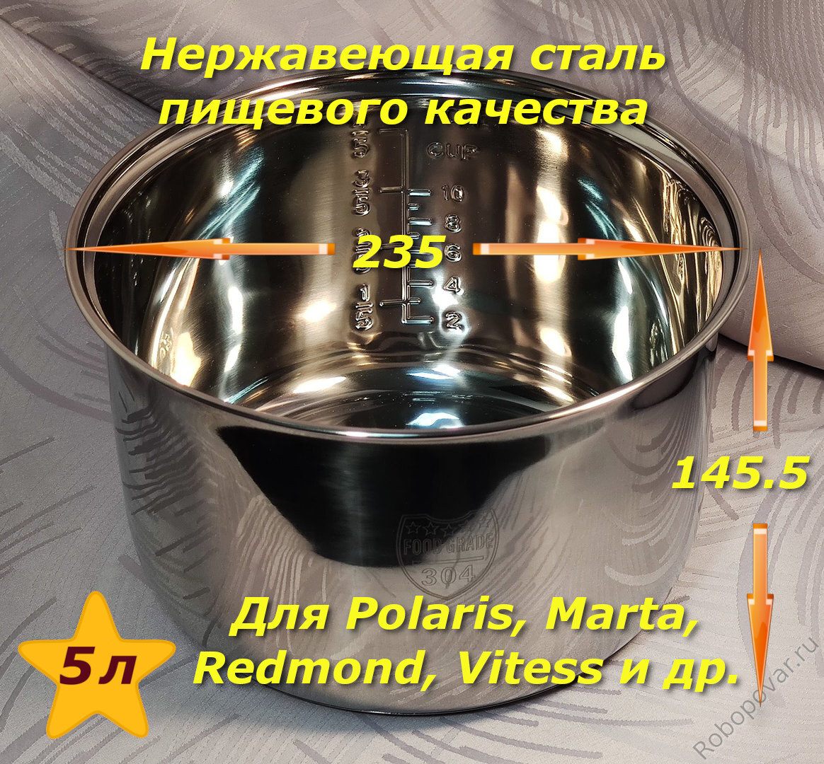 Товары типоразмера 5LP-180 (чаши на 5 литров для мультиварок, дно 180) также совместимы и с другими мультиварками, имеющим оригинальную внутреннюю чашу с такими габаритными размерами: